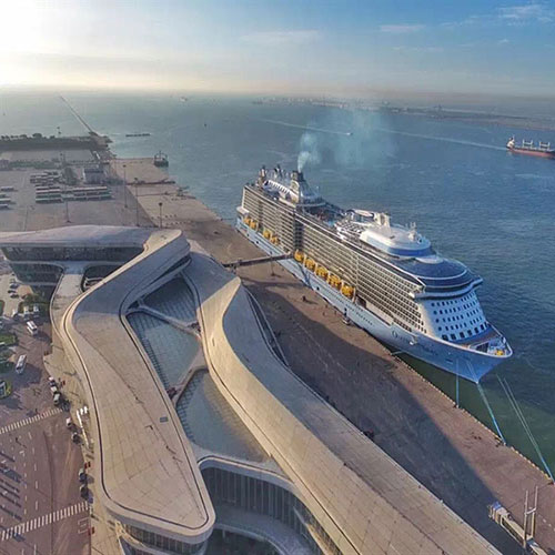 香港启德邮轮码头网址:www.kaitakcruiseterminal.com.hk(复制链接至地址栏查看)地址:香港九龙承丰道33号 香港启德邮轮码头简介香港启德邮轮码头前身为见证香港光辉岁月的启德国际机场,码头于2013年6月正式启用,可停靠总吨位22万吨的巨型邮轮,掀开了香港邮轮发展的新篇章。 启德邮轮码头拥有难以匹敌的地理位置优势,座落于香港中心地